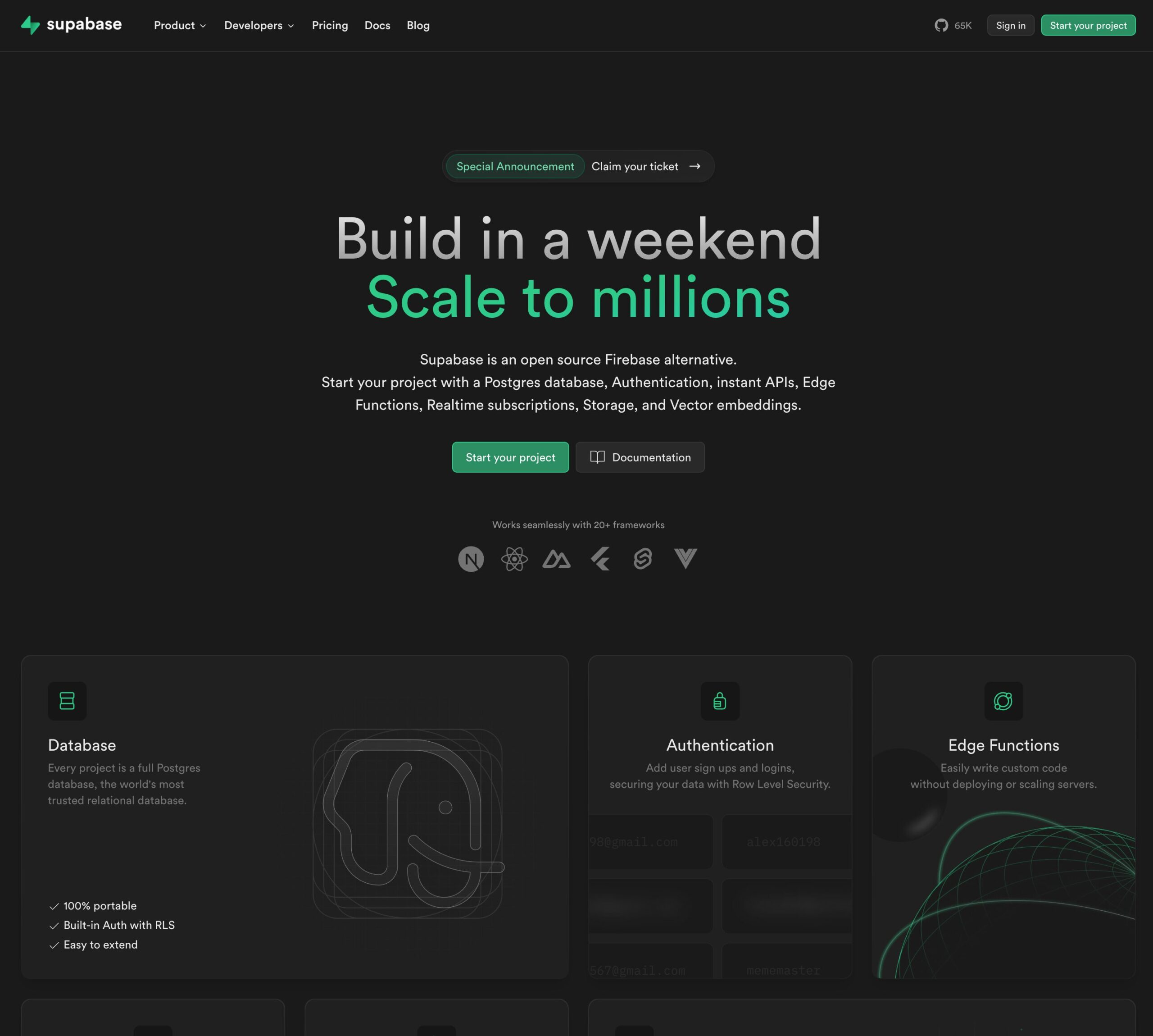 Supabase, ktorá je často označovaná za open-source alternatívu k Firebase, je viac ako len databáza; je to komplexná platforma backend-as-a-service (BaaS). V jadre Supabase poskytuje škálovateľnú databázu PostgreSQL, ale jej balík sa rozširuje o autentifikáciu, odbery údajov v reálnom čase, ukladanie súborov a okamžité rozhrania API. Supabase sa odlišuje svojím záväzkom k otvoreným štandardom a škálovateľnosti, čím ponúka vývojárom flexibilitu pri vytváraní bez obmedzení vyplývajúcich z viazanosti na dodávateľa.